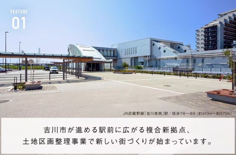 JR武蔵野線「吉川美南」駅へ徒歩7分~8分(約510m~570m)。