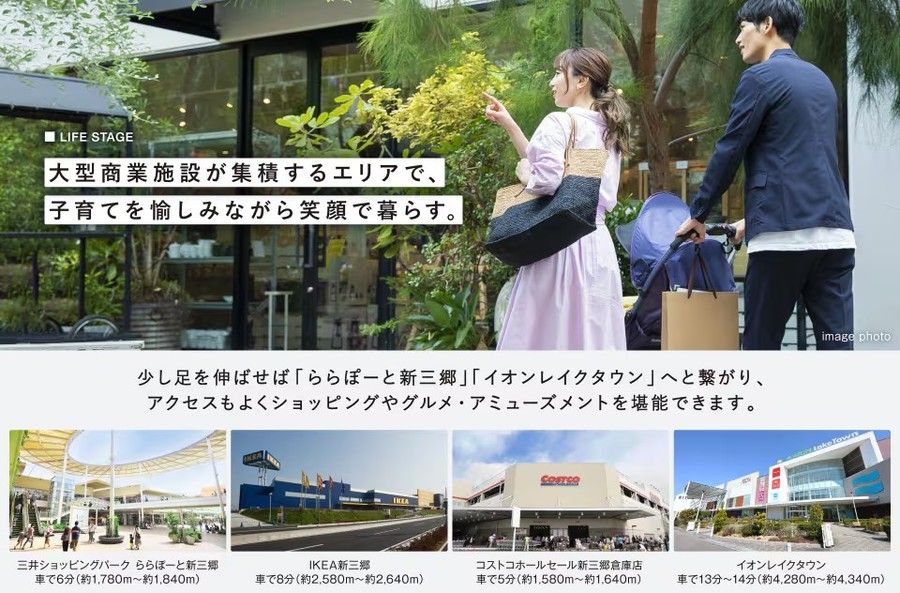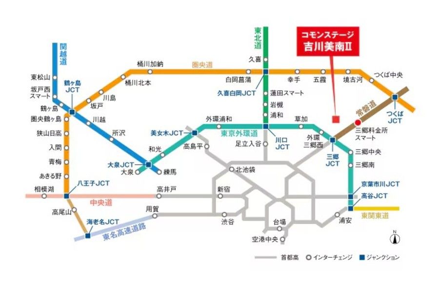 さらに車での移動は常磐道「三郷料金所」スマートIC(約3100m〜約3190m)が利用しやすく、