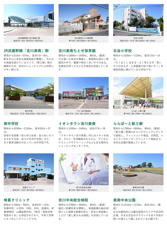 - JR武蔵野線「吉川美南」駅まで徒歩7分~8分