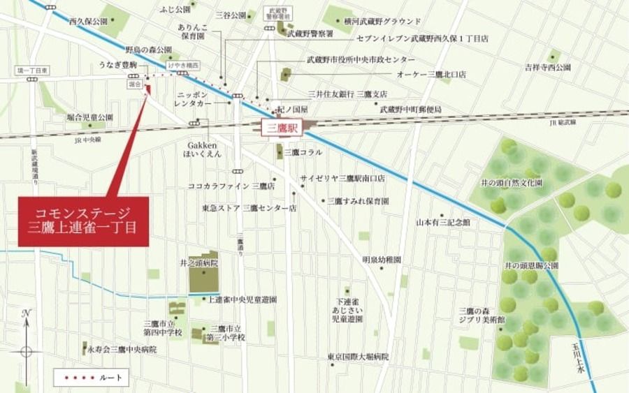 三鷹コラル:現地から700m~720m/徒歩9分(最長)