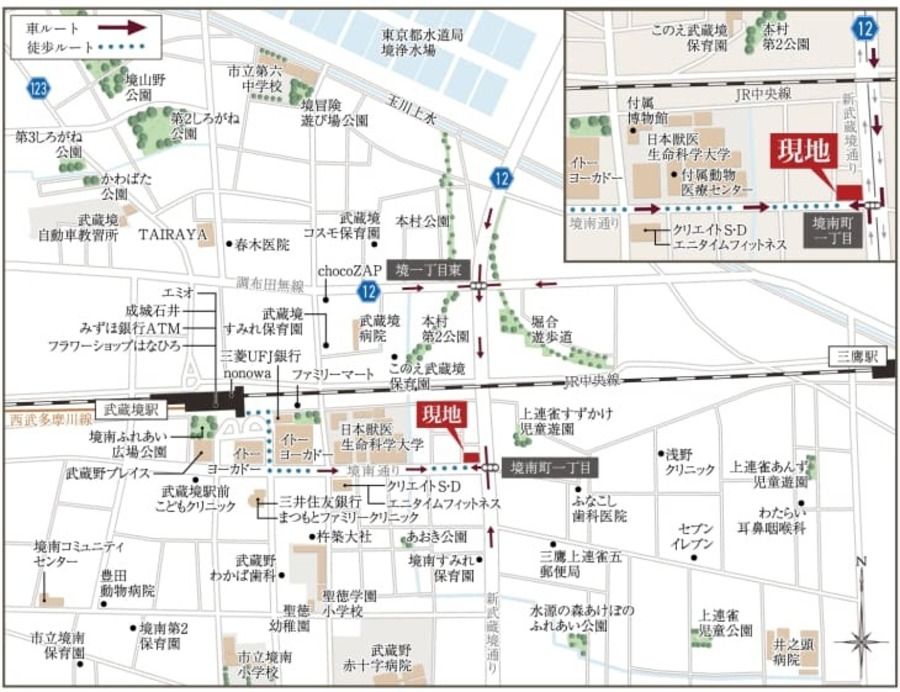 武蔵境病院:現地から690m/徒歩9分(最長)