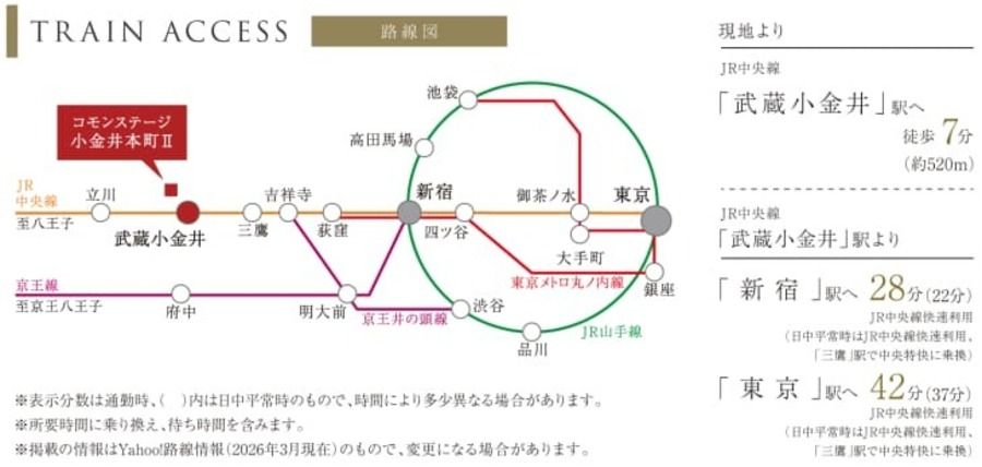 「新宿」駅へ28分、「東京」駅へ42分、主要駅へダイレクトアクセスが可能です。