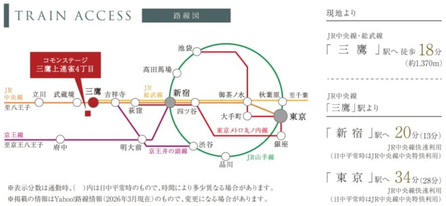 - JR中央線「三鷹」駅まで徒歩18分(最長)