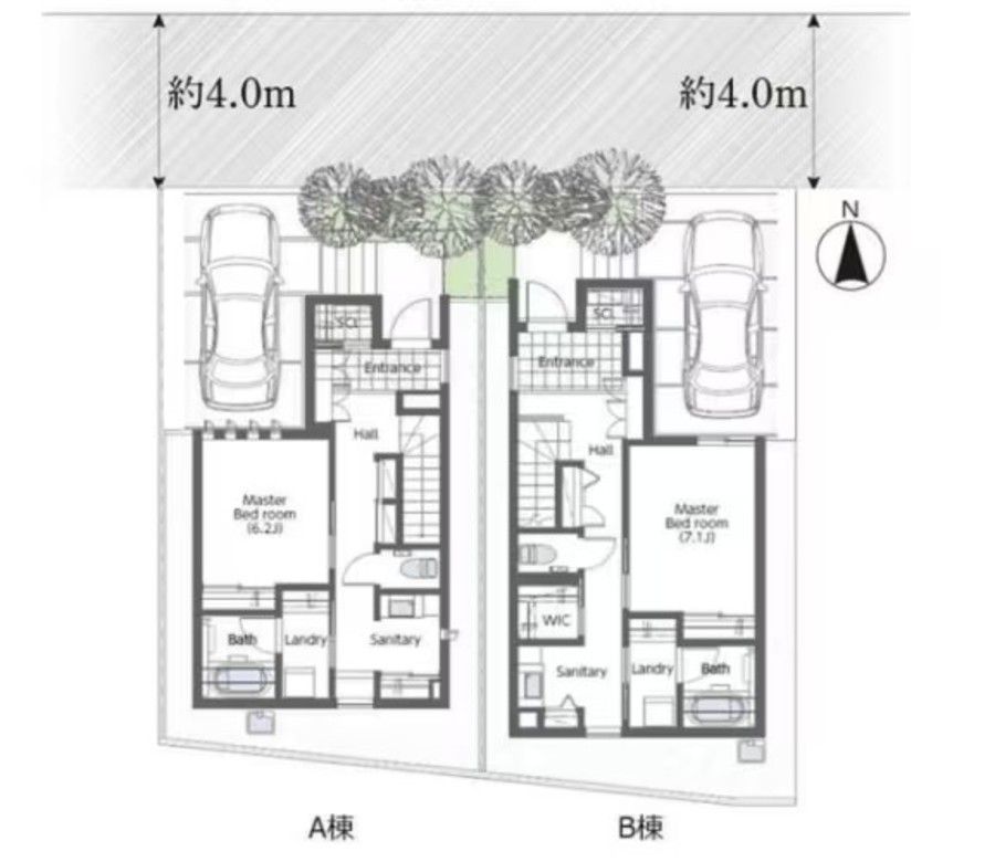 ※A棟の面積について/127㎡は建築確認上の面積につき庇分3.75㎡を含んでおります。有効建築面積は123.25㎡となります。