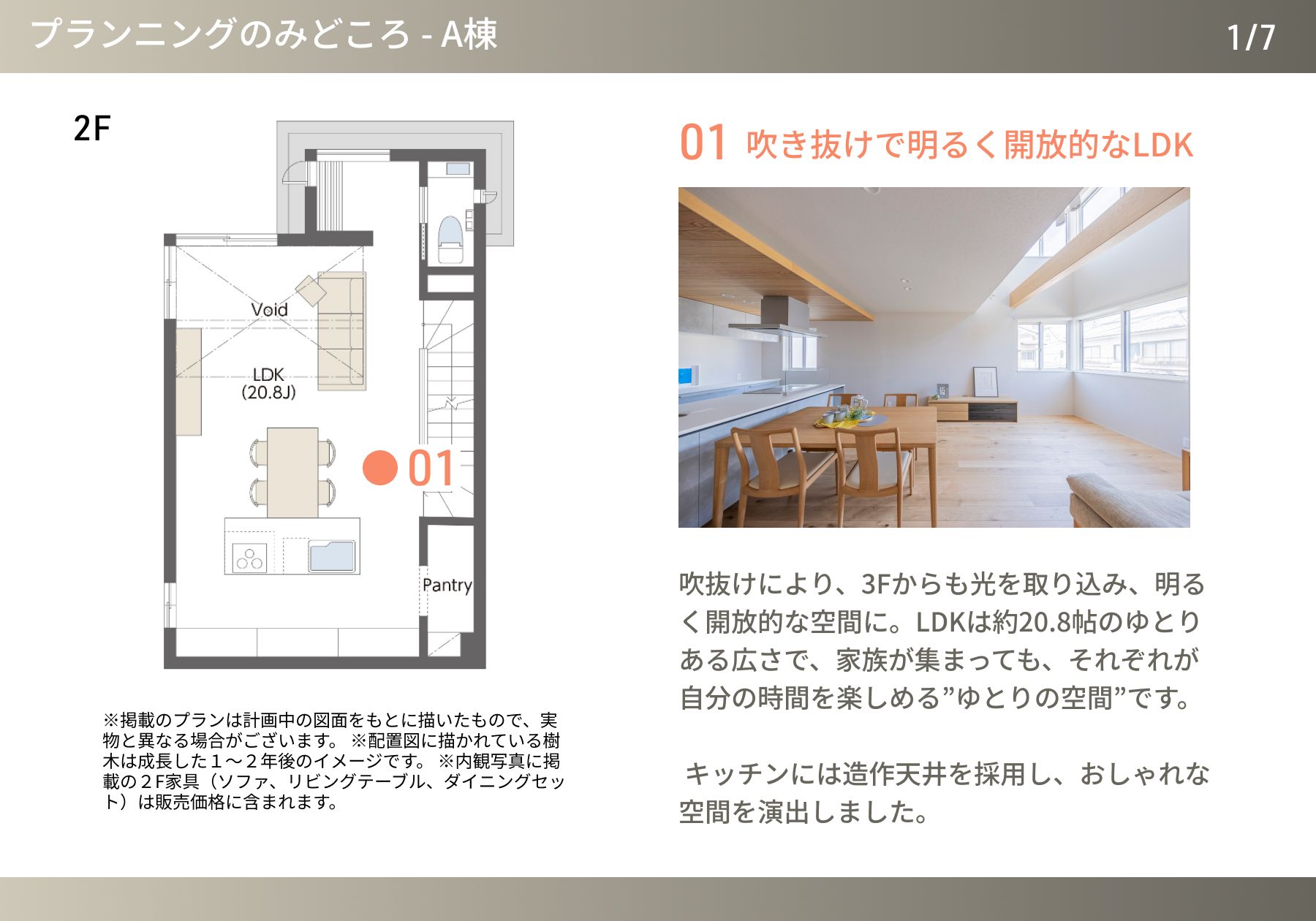 | A棟 | 88.51㎡(約26.77坪) | 127.00㎡(約38.41坪) | 7990万円 |