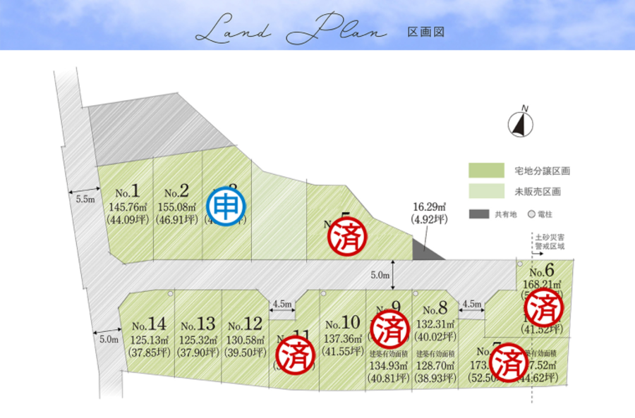 ●総区画数15区画の内、積水ハウス分は14区画です。