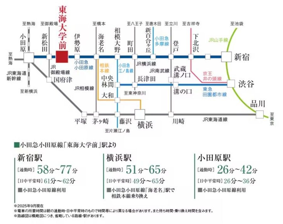 - 最寄バス停「東海大学東」停留所まで徒歩12分(最長)、「神奈川中央交通バス」に乗車、小田急小田原線東海大学前駅