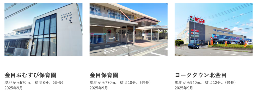 - ※周辺施設は、分譲地の所在地から半径3km以内の施設(大型施設は半径5km以内)のみを表示しています。