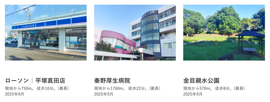 - 最寄バス停「東海大学東」停留所まで徒歩12分(最長)、「神奈川中央交通バス」に乗車、小田急小田原線東海大学前駅まで6分 開発面積