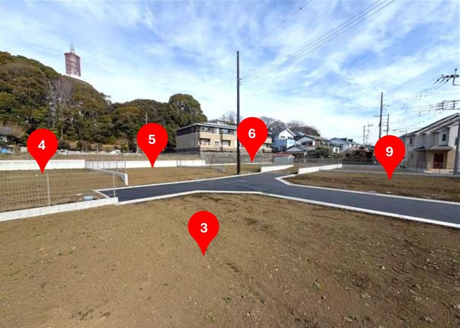 - ※分譲地は地図中心の赤いピン付近に所在します。(実際の物件所在地から多少ずれることがあります)