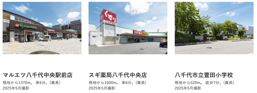 - ※周辺施設は、分譲地の所在地から半径3km以内の施設(大型施設は半径5km以内)のみを表示しています。