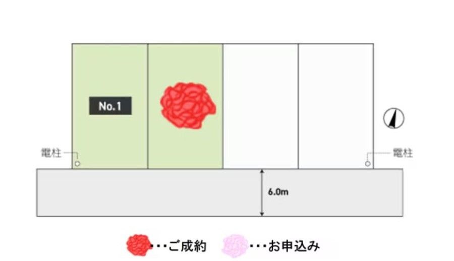 - ※分譲地は地図中心の赤いピン付近に所在します。(実際の物件所在地から多少ずれることがあります)