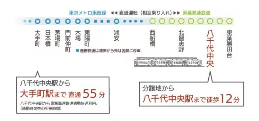 ※3 朝の通勤時に「八千代中央」駅から東葉高速鉄道通勤快速利用、「西船橋」駅直通にて東京メトロ東西線通勤快速利用。