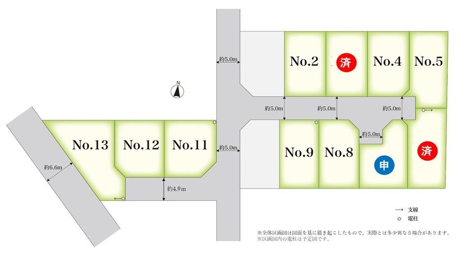 ●建蔽率/60%(No,11は角地緩和適用にて70%、No,13は二方向道路による緩和適用にて70%)●容積率/200%