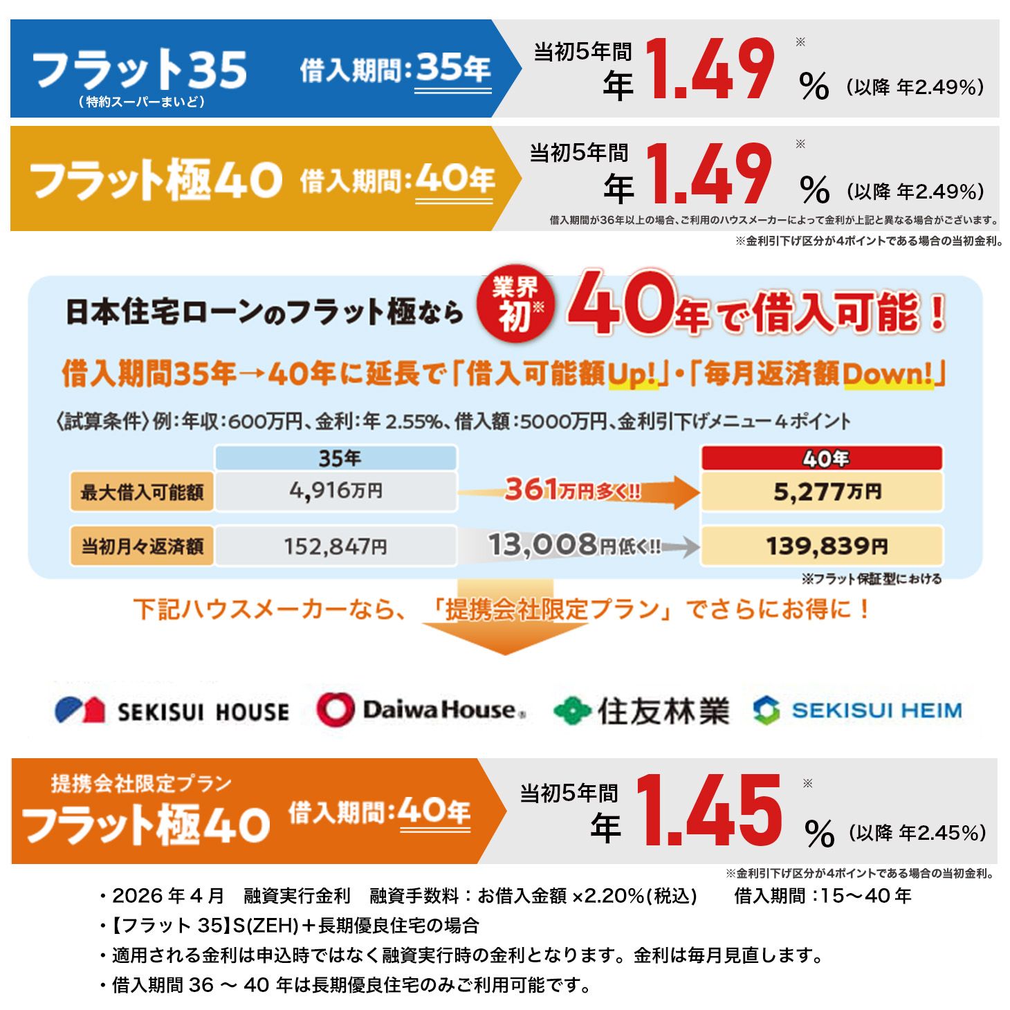 それが、日本住宅ローンだけの「2年待てるローン(MCJフラット極40)」です。