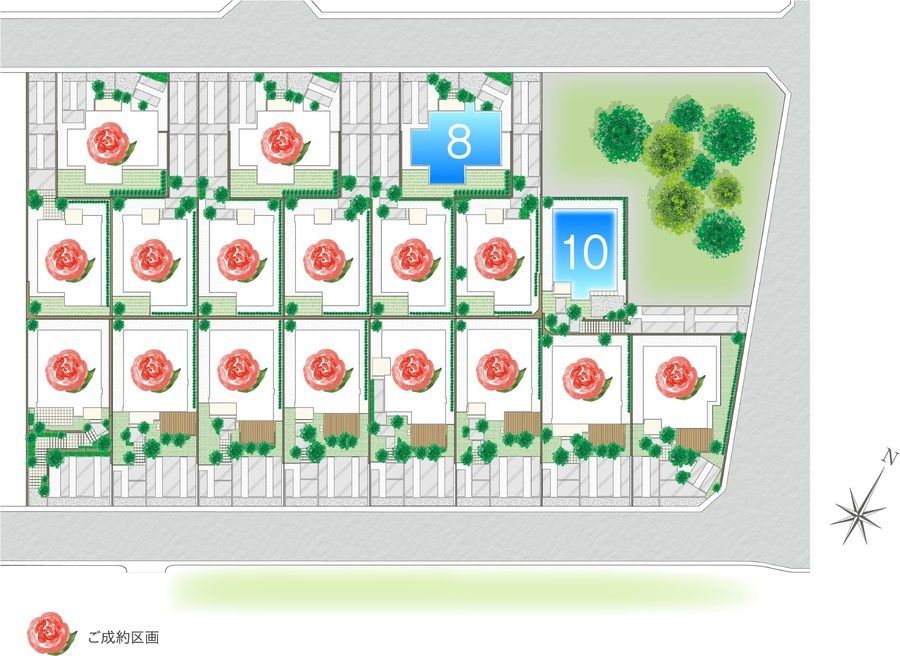 ■植栽を配したオープン外構にすることで美しく開放的な街並み■