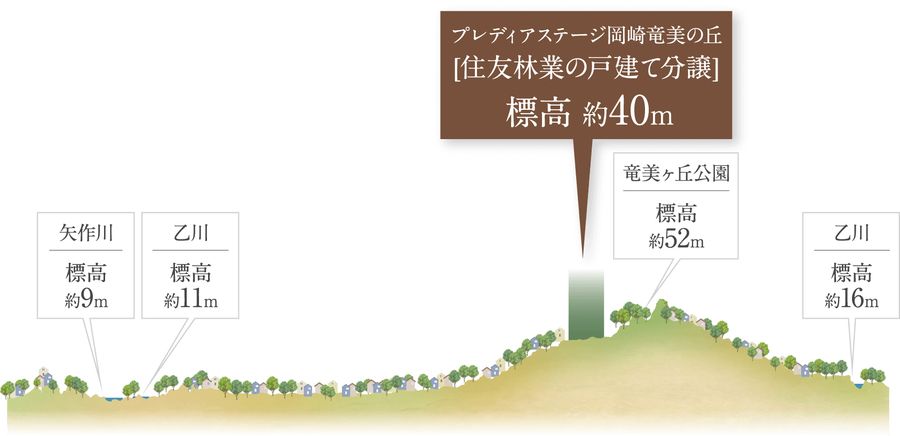 竜美ヶ丘公園がほど近くにある「プレディアステージ岡崎竜美の丘 住友林業の戸建て分譲」は