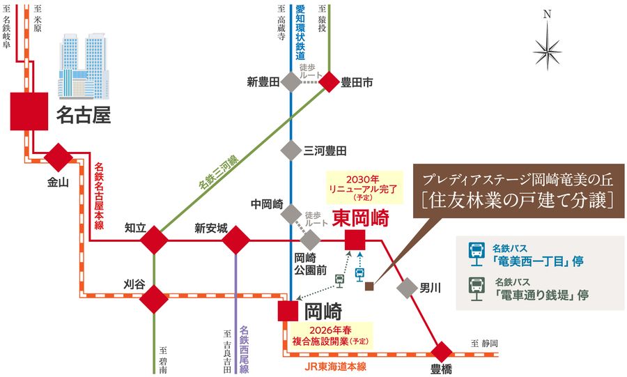 名鉄「東岡崎駅」の再開発、JR「岡崎駅」駅前の複合施設開業などが予定されており※3