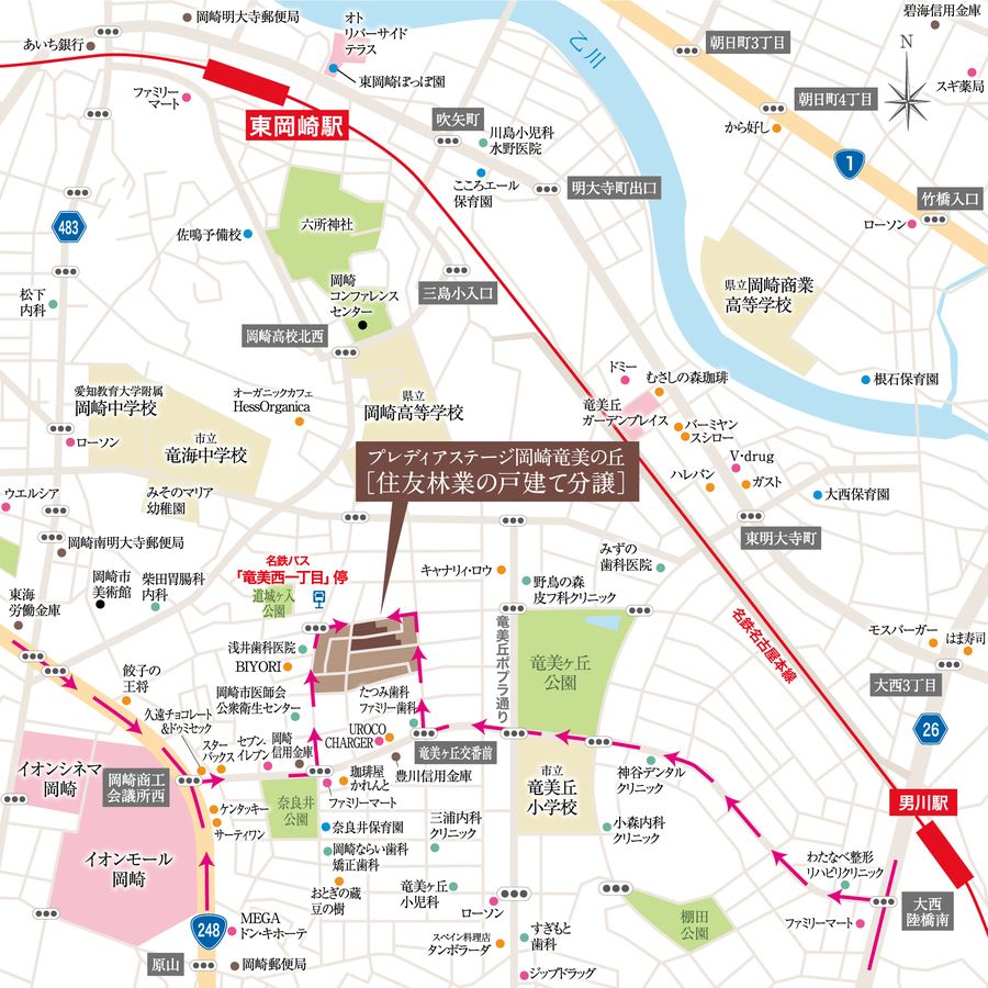 本プロジェクト「プレディアステージ岡崎竜美の丘」の舞台。