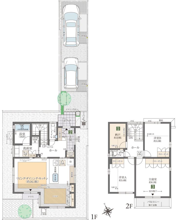 ■通勤用に、日々の買い物用にと全邸2台駐車可