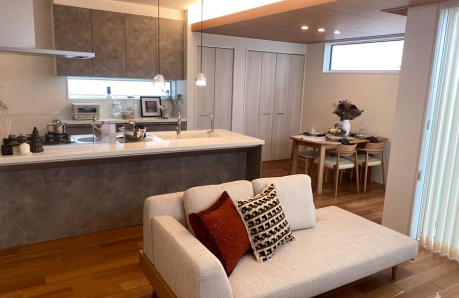 家具ブランド「マスターウォール」とのコラボレーションで、住友林業ならではの木の質感が感じられる空間が活きるコーディネートをご提案。2号棟モデルハウスはオーク材の家具、1号棟販売センターはウォールナット材の家具を誂えますので、木材による印象の違いをご体感していただけるのが魅力です。