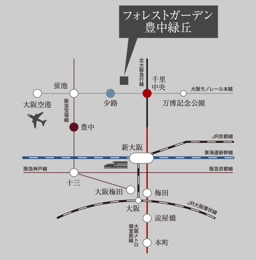 - 北大阪急行線「千里中央」駅まで徒歩19分