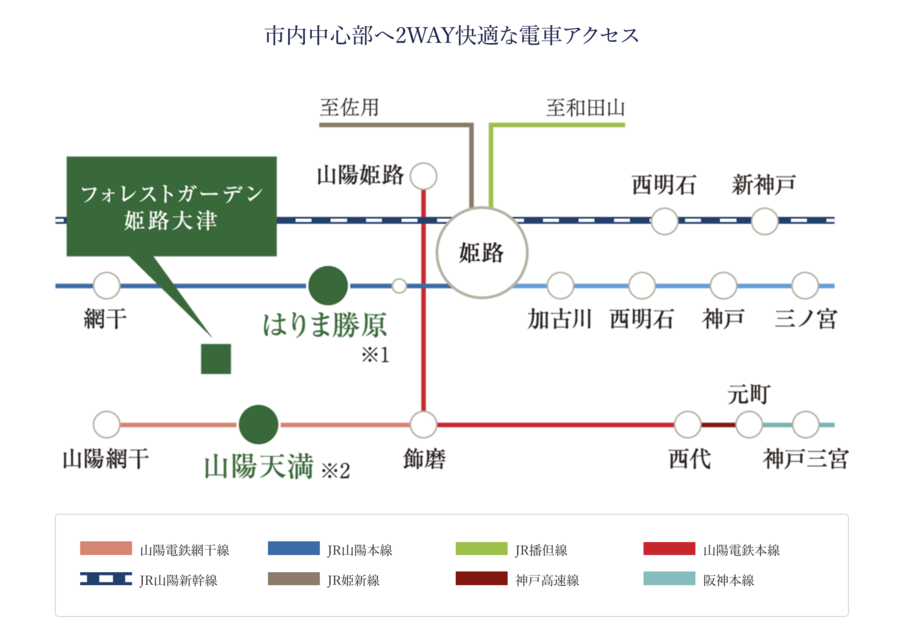 「姫路」駅や「三ノ宮」駅へ快適なダイレクトアクセス。