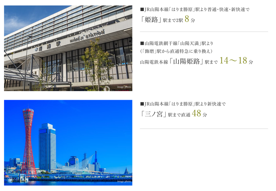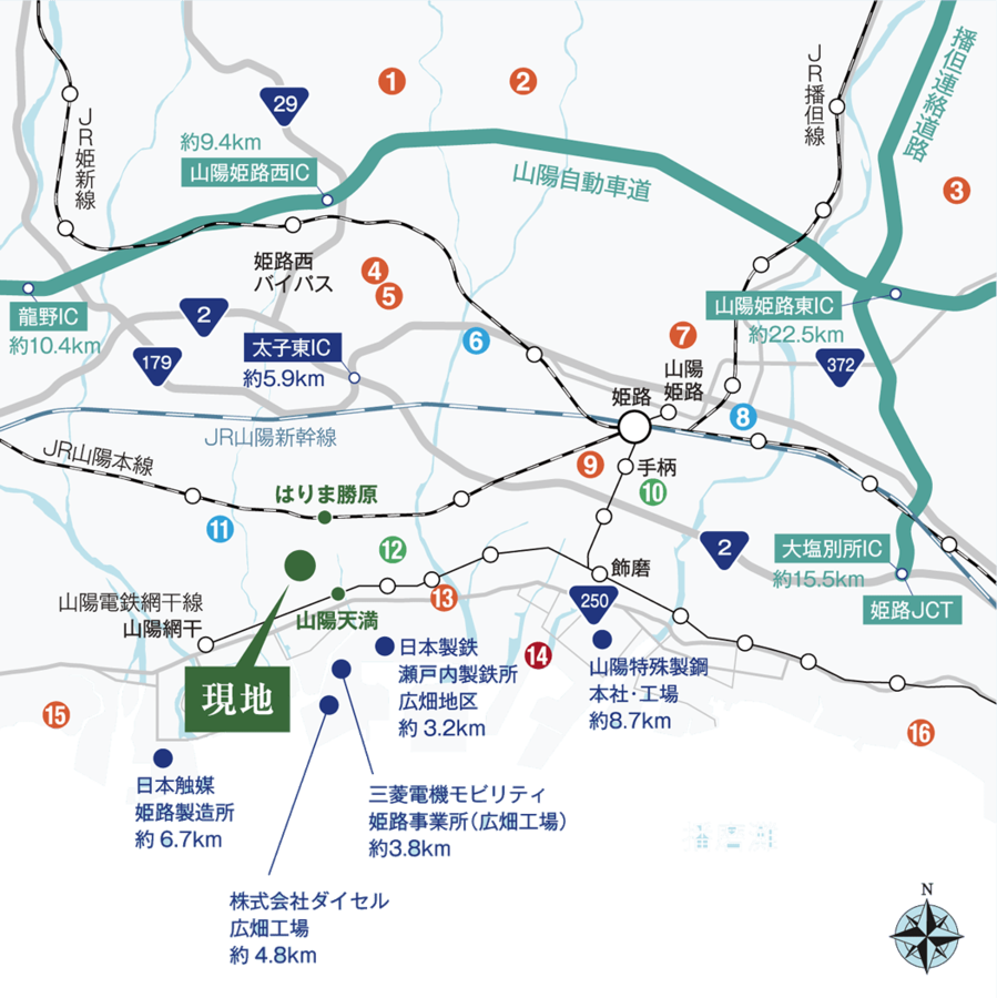 - JR山陽本線「はりま勝原」駅まで徒歩19~20分