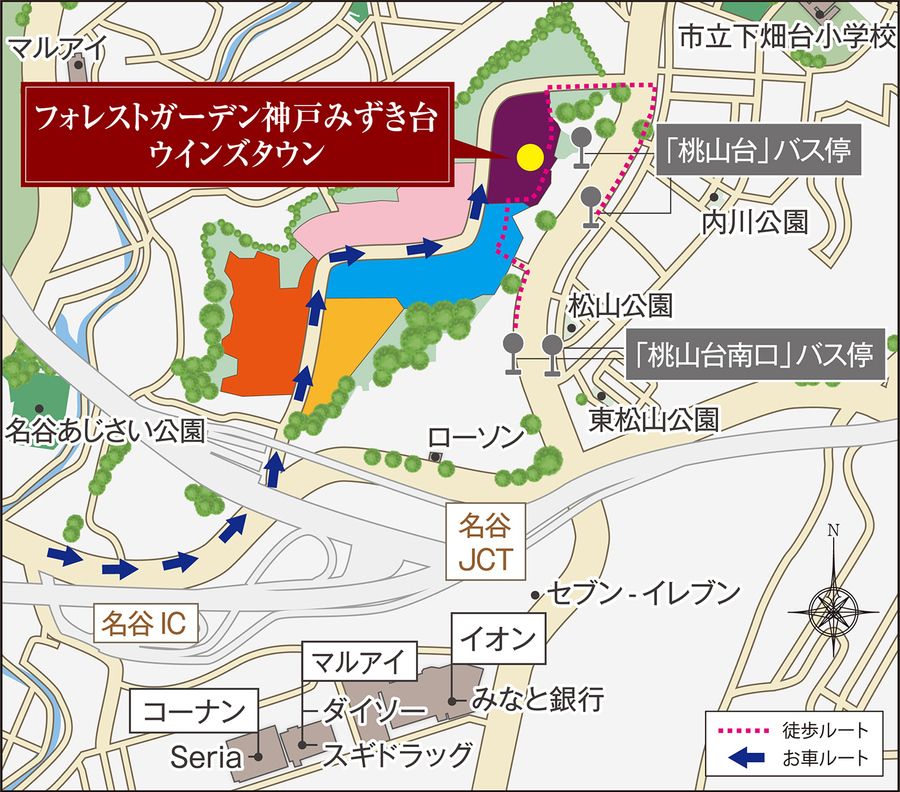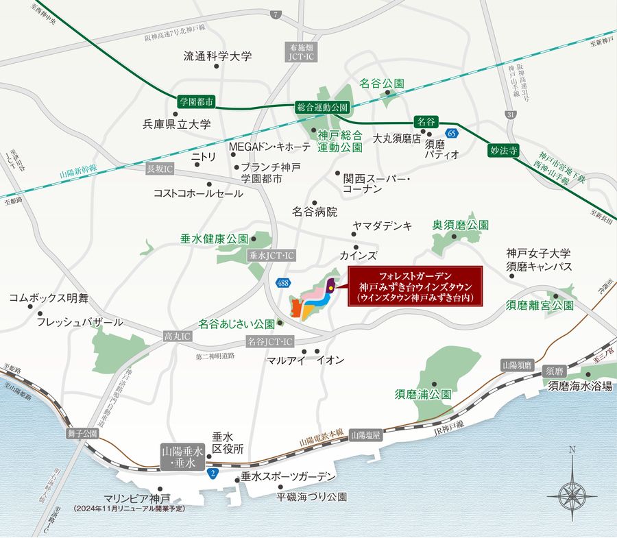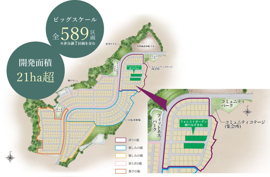 開発面積約21haの「ウインズタウン神戸みずき台」のタウン内に誕生する「フォレストガーデン神戸みずき台ウインズタウン」。