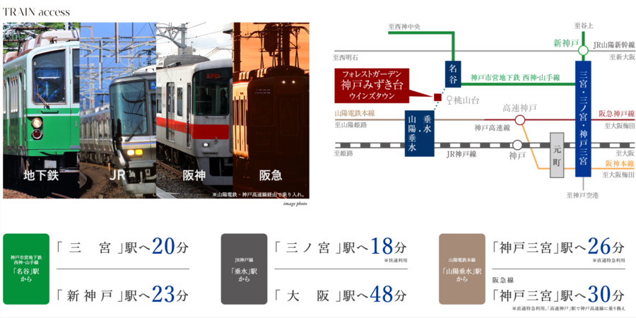 「三ノ宮」駅へ18分(※快速利用)