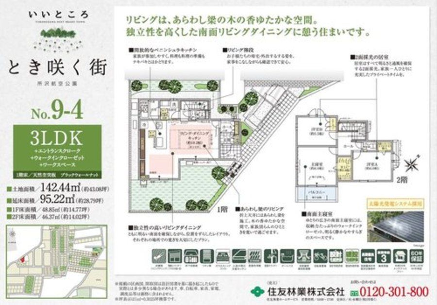 「とき咲く街 所沢航空公園」現地販売事務所 TEL:0120-301-800 受付時間/10:00~17:00 定休日/火・水曜定休(祝日を除く)