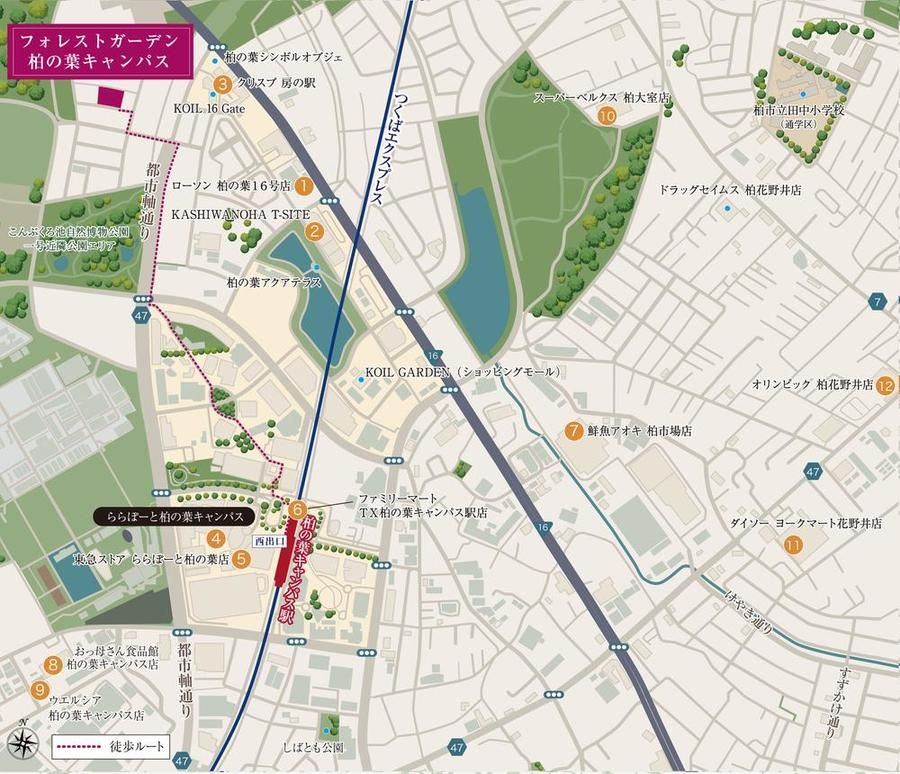 - つくばエクスプレス「柏の葉キャンパス」駅 徒歩13~14分