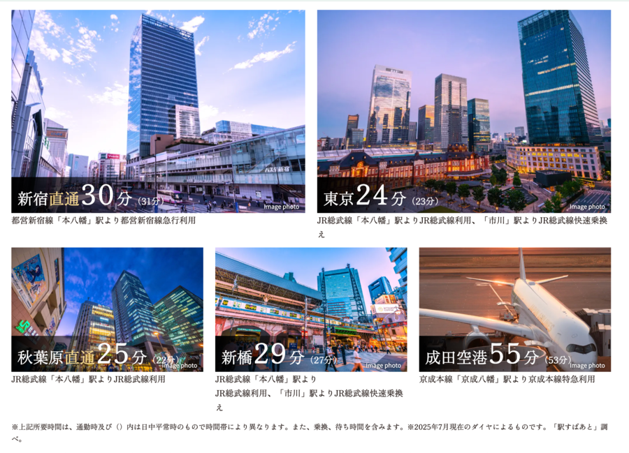 ●備考:市川市景観法自然と歴史の住宅地ゾーン※掲載の環境写真は2025年7月撮影のものです。※掲載の情報は2025年2月現在のものです。※掲載の徒歩分数は80m=1分として端数を切り上げたものです。※掲載の現地周辺航空写真は2025年7月に撮影したものに、光等CG処理を加えたもので、実際とは異なります。現地の位置を表現した光は建物の高さや規模、向きを正確に表したものではありません。※掲載の立地イメージイラスト、エリア概念図は、周辺の立地を概念化しイラスト表現したもので、地形・距離・方向等は実際とは異なります。※掲載の外構計画図は計画段階の図面を基に描き起こしたもので、実際とは多少異なります。※交通アクセスの所要時間は、通勤時及び()内は日中平常時のもので時間帯により異なります。また、乗換え、待ち時間を含みます。※2025年2月現在のダイヤによるものです。「駅すぱあと」調べ。