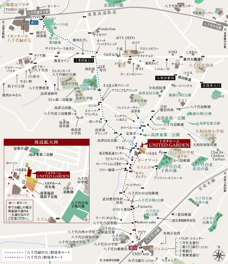 - 京成本線「八千代台」駅まで徒歩18~19分