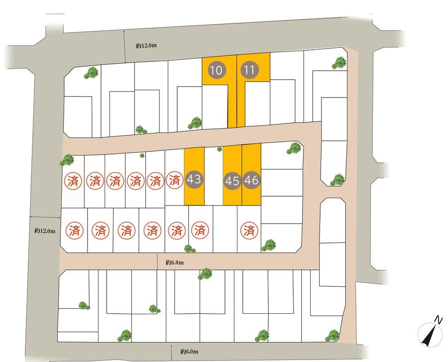 ●道路幅員/東側約6m、西側約12m、南側(志段味線自転車歩行者道第2号)、北側約12m、開発区域内6m