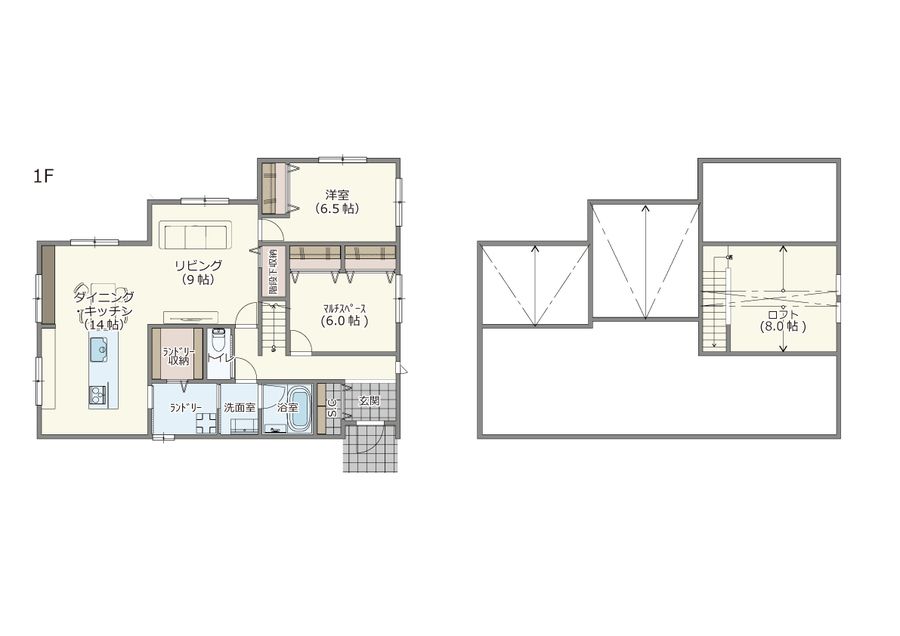 洗面室と脱衣室はそれぞれ独立して配置されている生活のしやすい間取りとなっています。