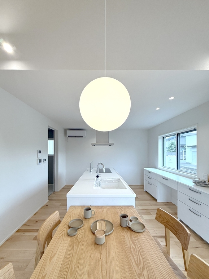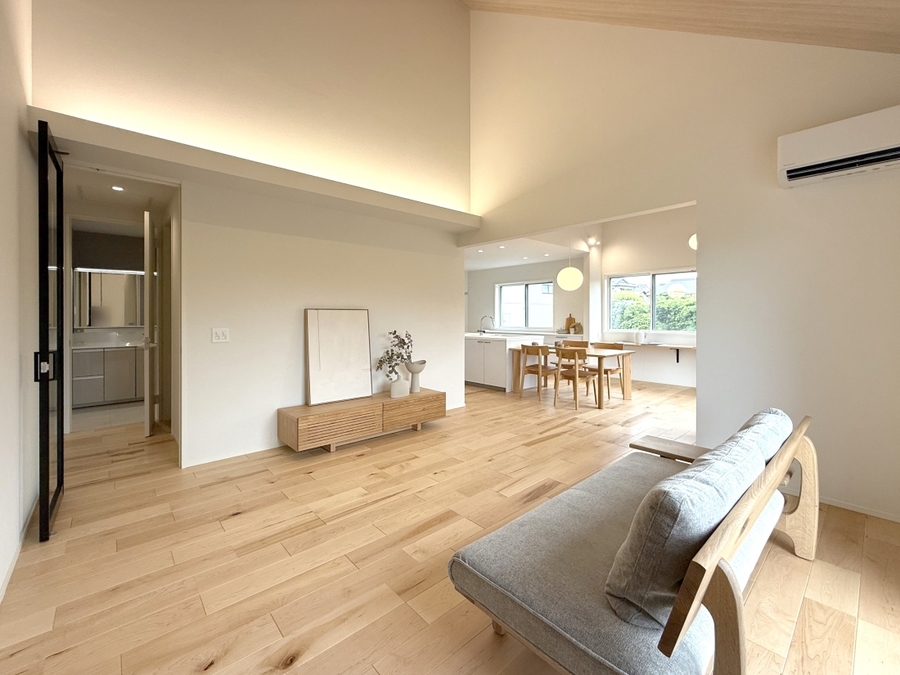 木のぬくもりを感じられる内装を施したリビング・ダイニングキッチン。