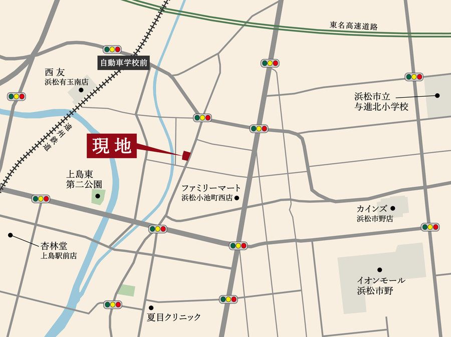 - ※周辺施設は、分譲地の所在地から半径3km以内の施設(大型施設は半径5km以内)のみを表示しています。