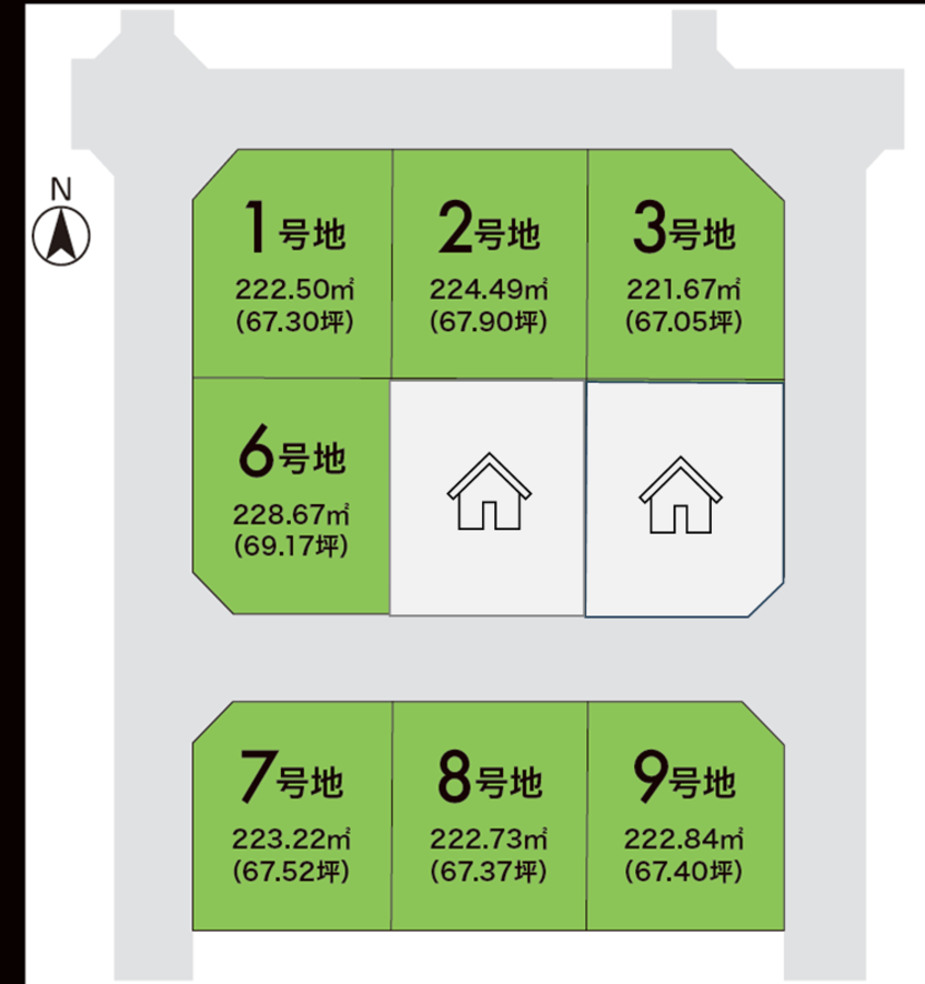 67坪超のゆったりとした分譲地です。