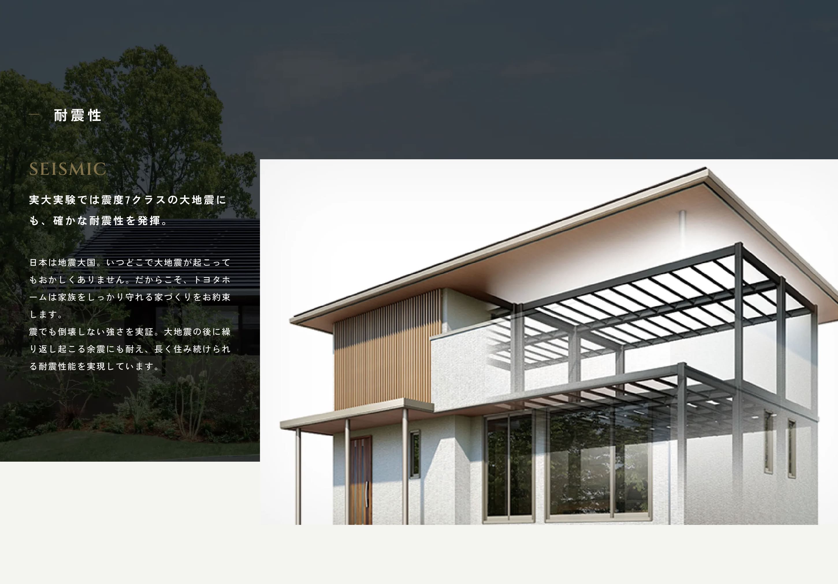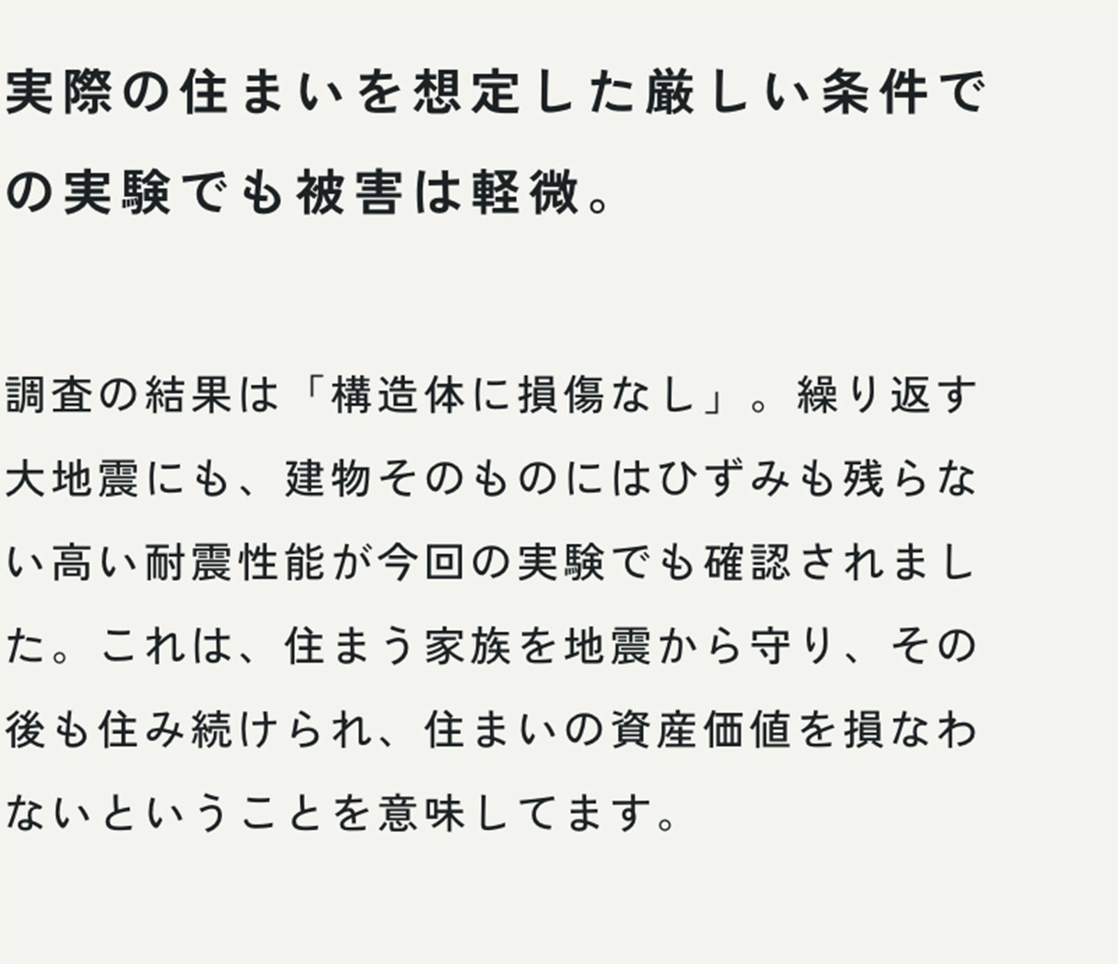 実大実験で震度7クラスの大地震を再現。構造体の損傷は一切なく、安心して住み続けられる耐震性能が実証されました。