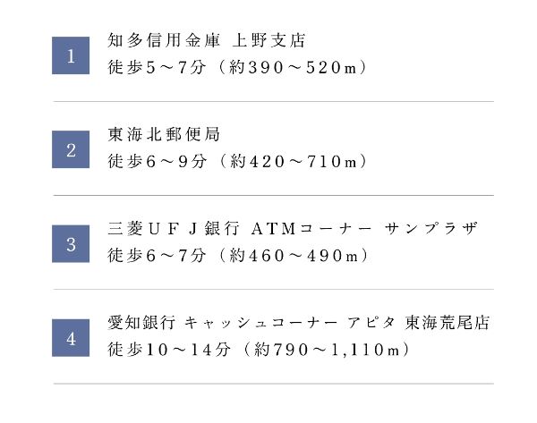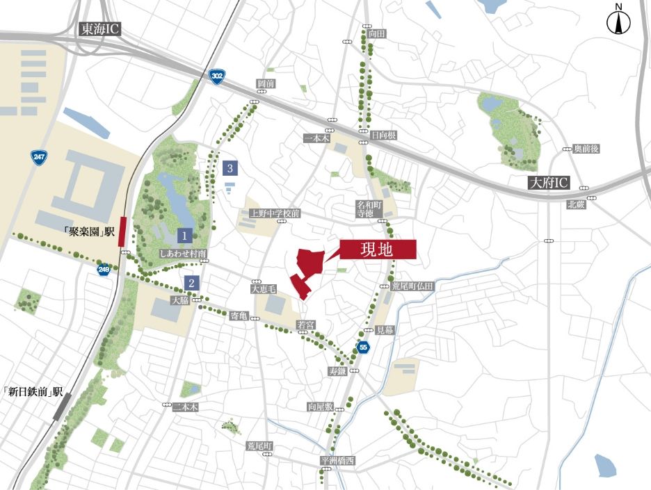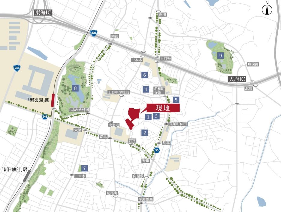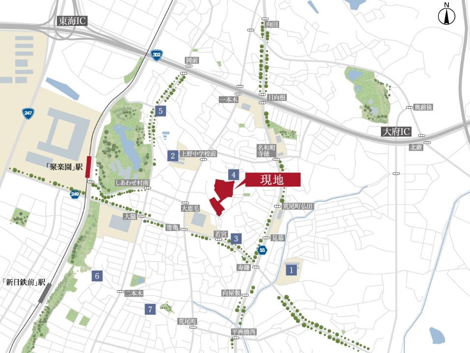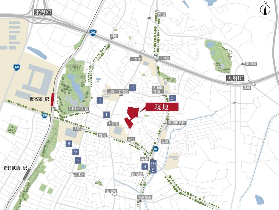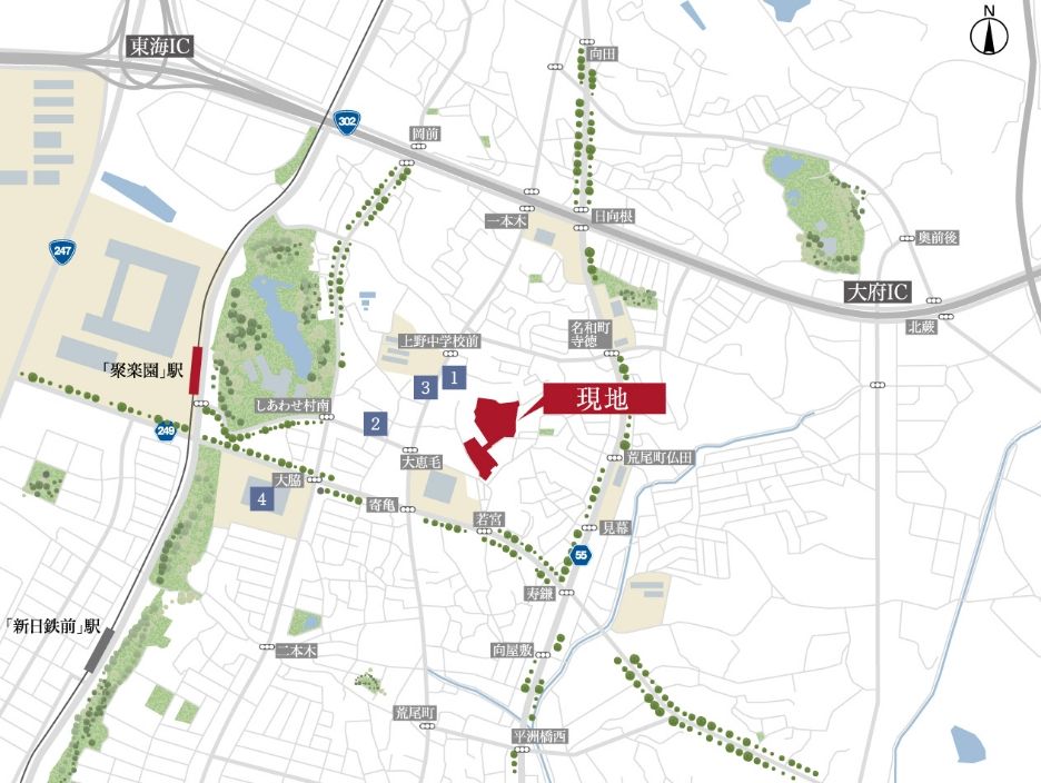 ・名鉄常滑線「聚楽園」駅: 約1,030~1,310m 徒歩約13~17分